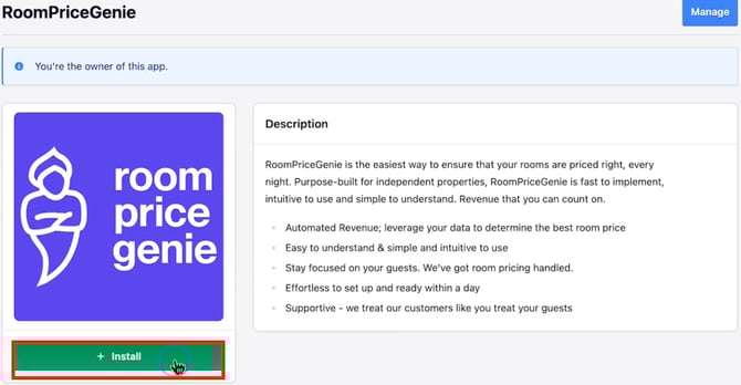 Suchen Sie nach RoomPriceGenie und wählen Sie es aus.
