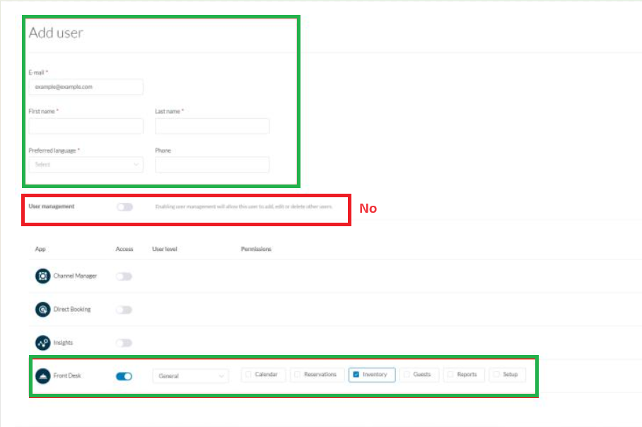 Wenn Sie LittleHotelier mit RoomPriceGenie verbinden möchten, muss der neue Benutzer unbedingt im Front Desk angelegt werden – nicht im Channel Manager!