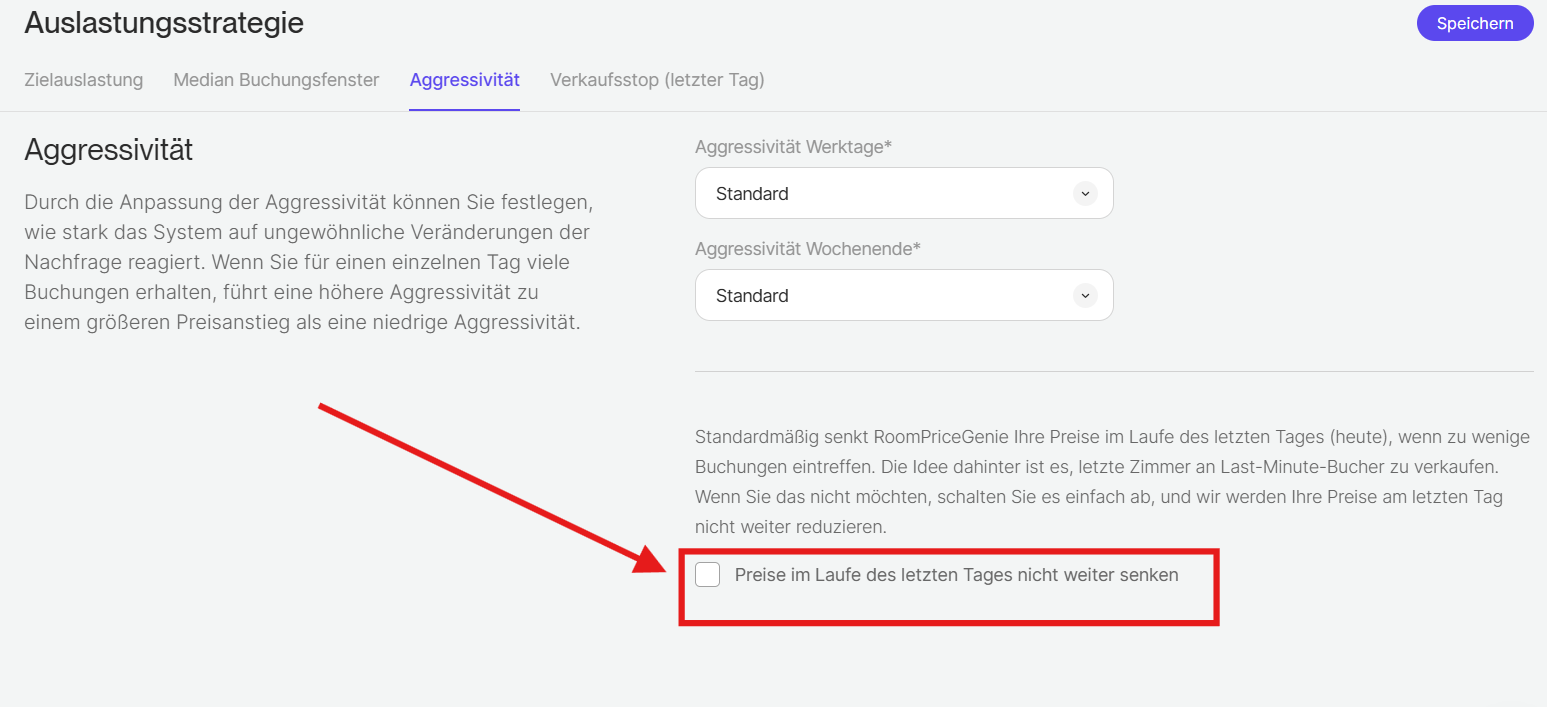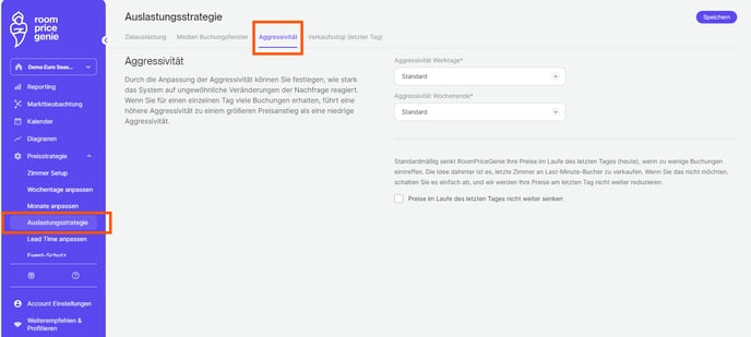 Wo kann ich die Aggressivität in RoomPriceGenie einstellen?