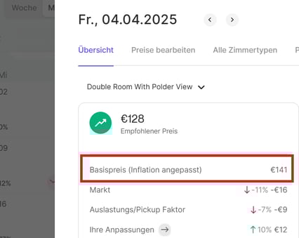 Wenn Sie ein beliebiges Datum in der Kalenderansicht auswählen, wird der Basispreis im Preis-Pop-up angezeigt. Der Basispreis dient als Ausgangspunkt für unsere Berechnungen.