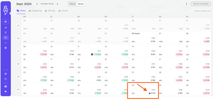Es gibt zwei Methoden, um Preise für einen bestimmten Tag oder mehrere Tage manuell anzupassen: