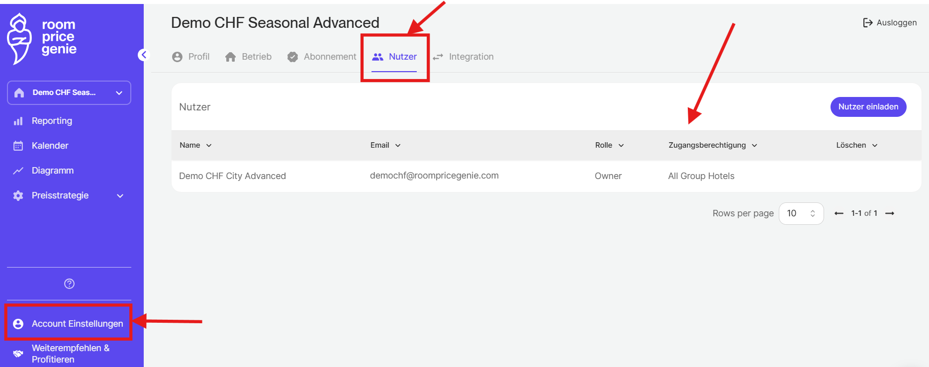 Der folgende Artikel erklärt, wie zusätzliche Nutzer in einem bestehenden RoomPriceGenie-Konto hinzugefügt und verwaltet werden können.