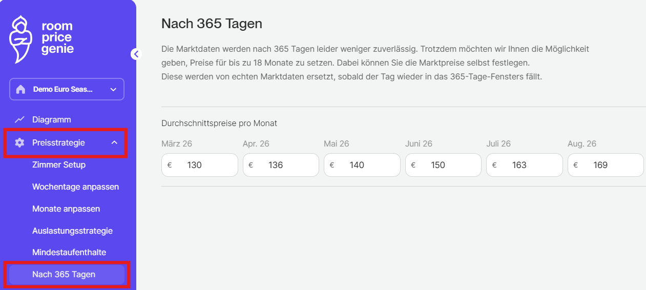 Der Artikel beschreibt die After 365 Days Pricing-Funktion von RoomPriceGenie, die die Preisprognosen auf einen Zeitraum von 18 Monaten erweitert.