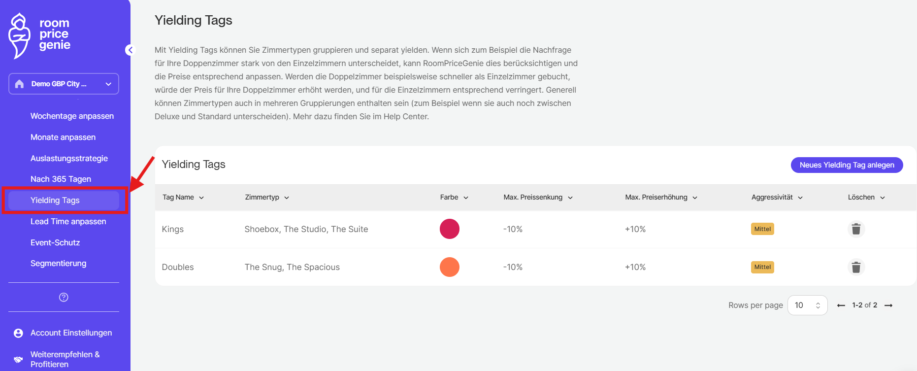 Der folgende Artikel erklärt das Konzept der Yielding Tags in RoomPriceGenie und wie es effektiv genutzt werden kann.