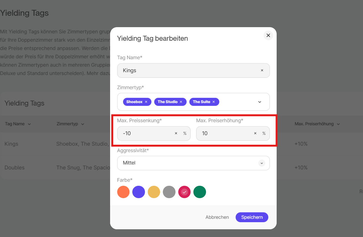 *Hinweis: Alternativ können Sie das Yielding Tag auch nur für eine Gruppe anwenden, wenn nur ein Zimmertyp eine dynamische Preisanpassung benötigt.