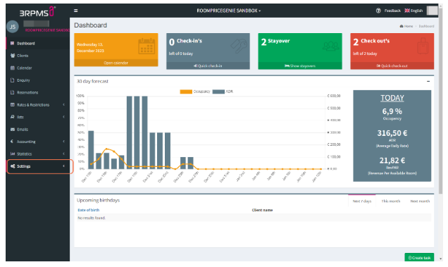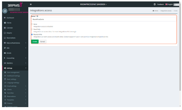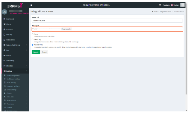 Para establecer la integración con RoomPriceGenie, necesitamos una clave API.