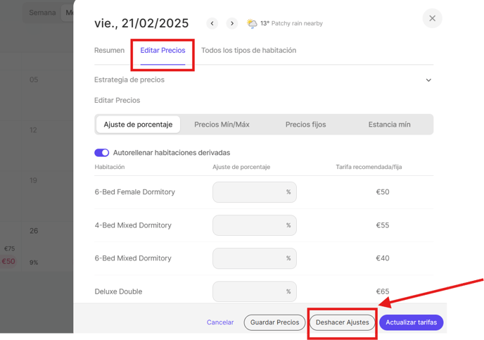 ¿Cómo eliminar los Ajustes Porcentuales en RoomPriceGenie?