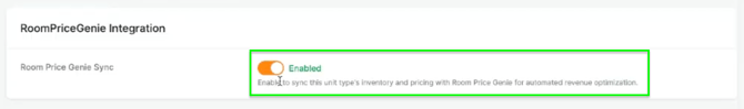 - Activa la habitación correspondiente para poder hacer el envío de la misma a RoomPriceGenie