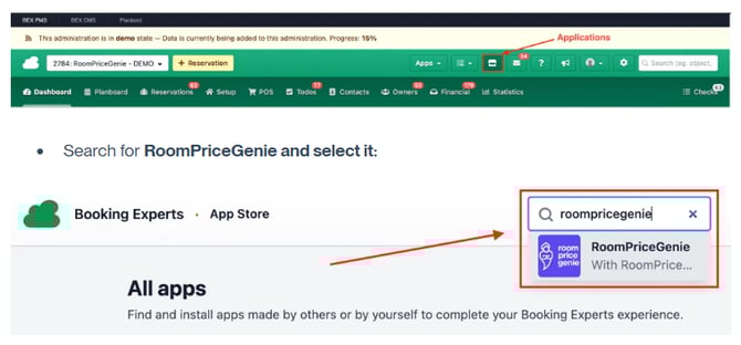 En tu cuenta de Booking Experts, ve a la pestaña Aplicaciones: