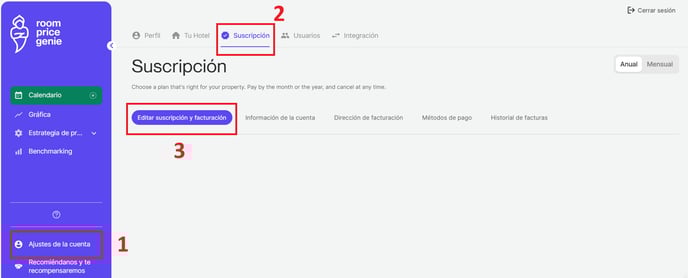 Aprenda a cancelar su suscripción en RoomPriceGenie con nuestra guía paso a paso. Tenga en cuenta nuestra política de tarifas por reconexión para volver a suscribirse. Póngase en contacto con subscriptions@roompricegenie.com para recibir ayuda.