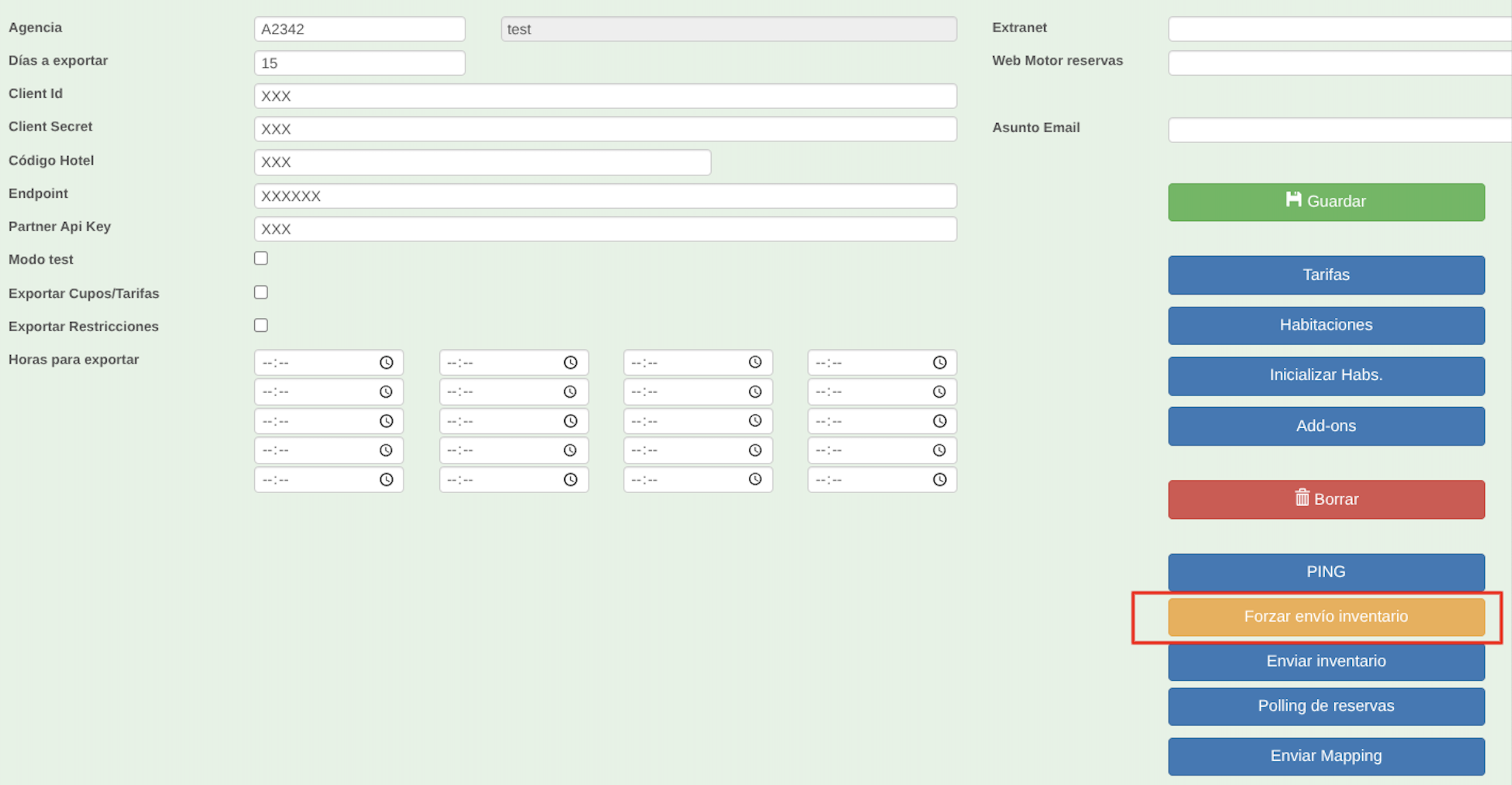 Modo Test: Actívalo solo si deseas generar inventario sin enviarlo a RoomPriceGenie.