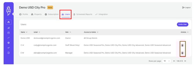 Si desea eliminar un usuario en RoomPriceGenie, siga los pasos a continuación: