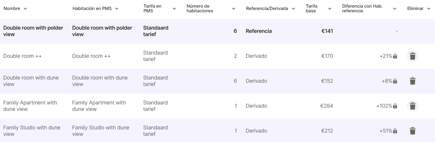 En RoomPriceGenie, siempre seleccionamos una de sus habitaciones como habitación de referencia. El tipo de habitación de referencia en RoomPriceGenie es el tipo de habitación que sirve de base para derivar el resto de los tipos de habitaciones.Al establecer un precio y mantener otros con una relación constante con él, el proceso de fijación de precios se vuelve más estructurado y estable. Los beneficios de este enfoque son los siguientes: