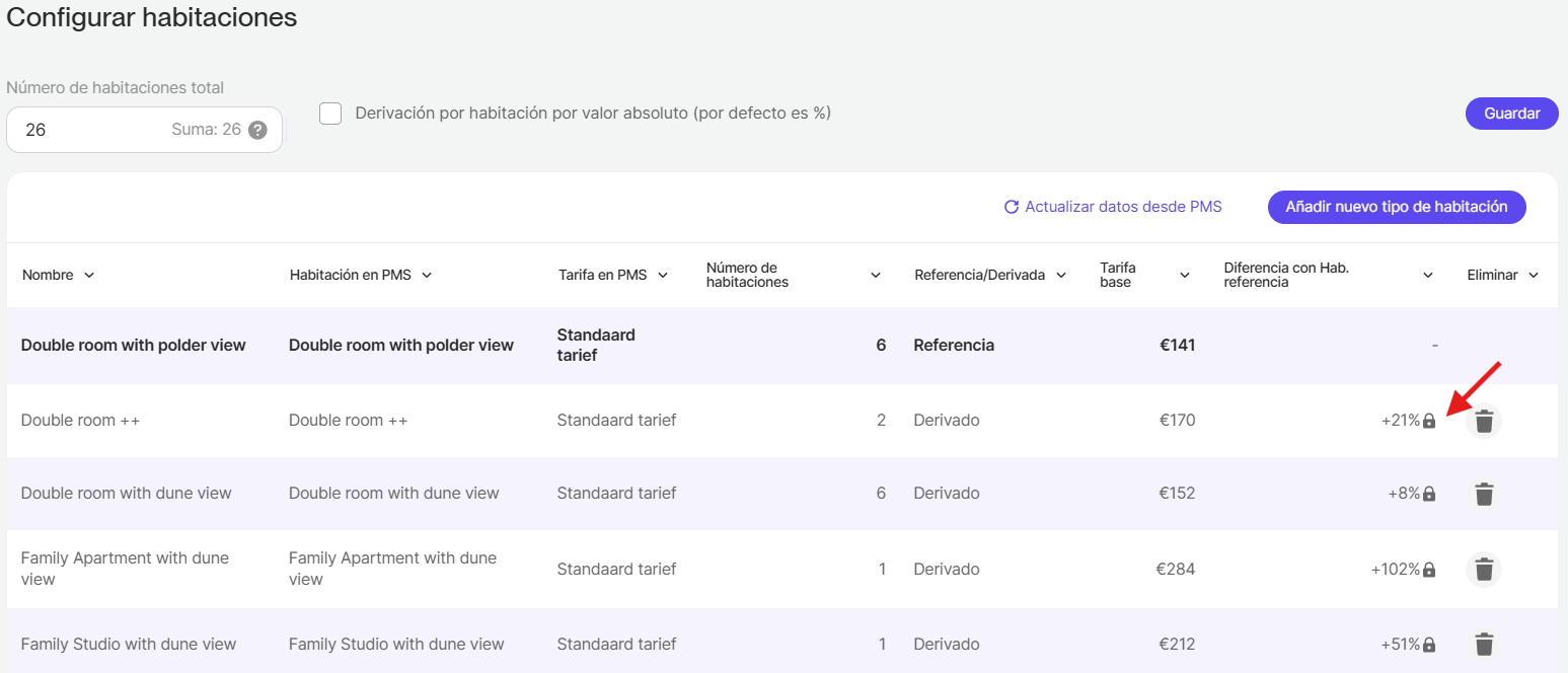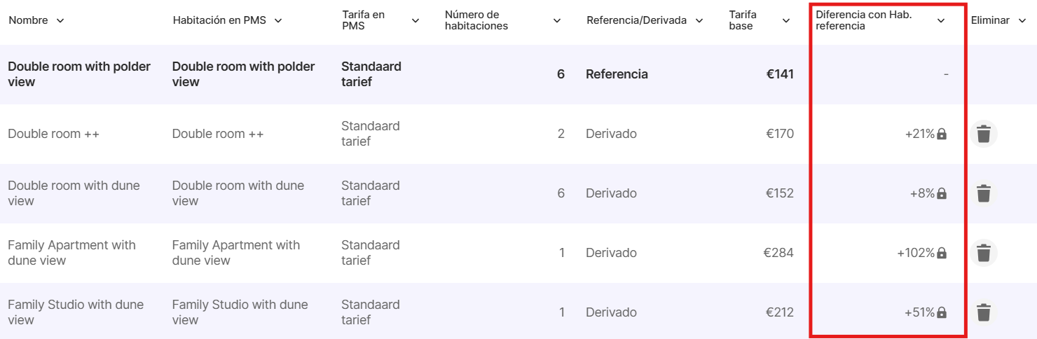 - Escriba la derivación de la habitación de referencia como precio fijo o como porcentaje.