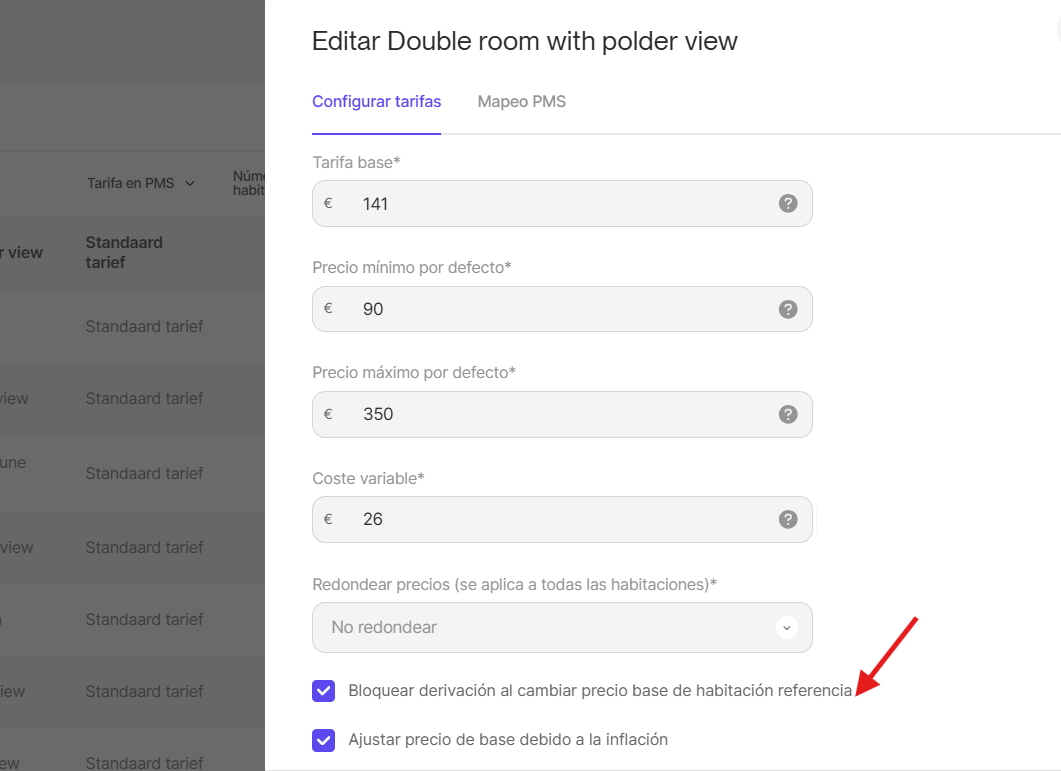 Bloquear la Derivación al cambiar el Precio Base de la Habitación de Referencia