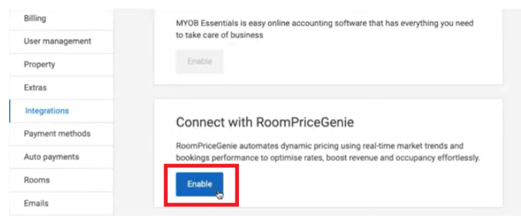 Paso 2: Busca RoomPriceGenie y haz clic en Habilitar (Enable).
