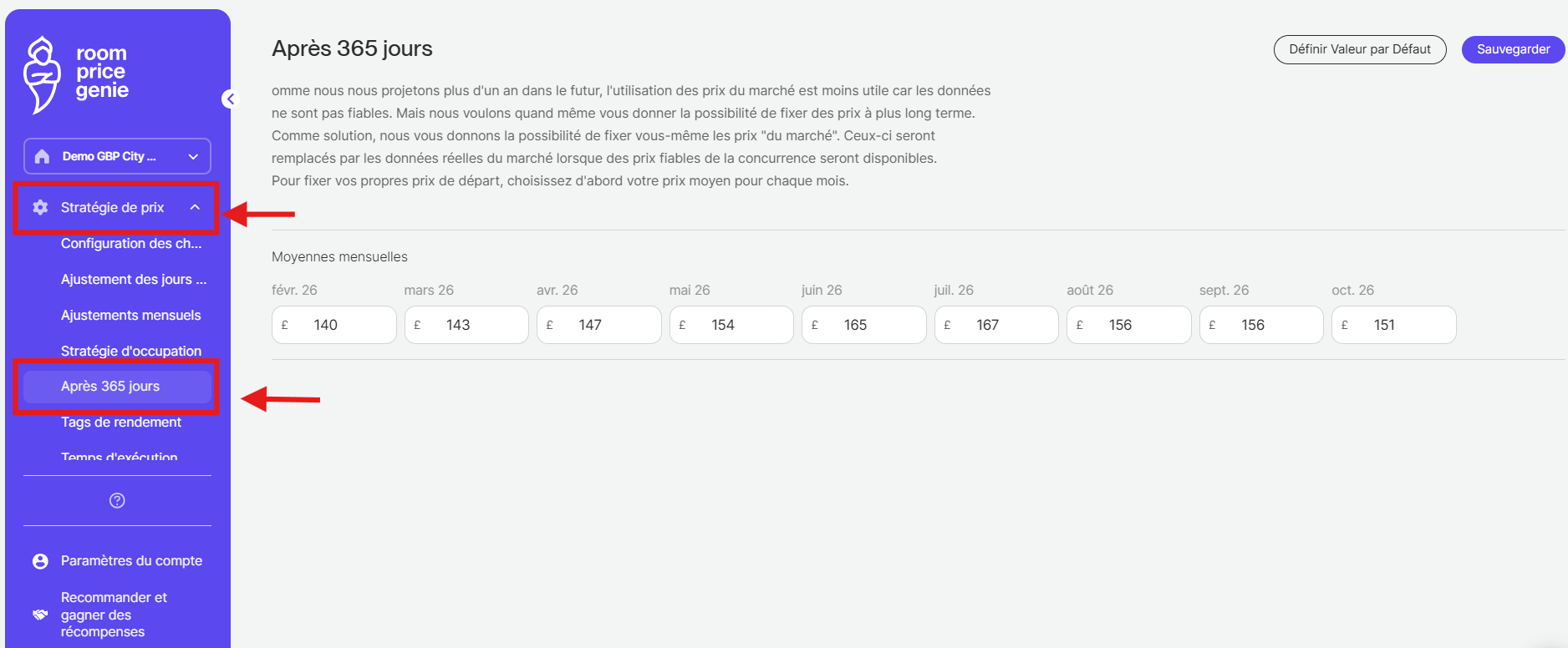 REMARQUE : Si vous n'avez pas activé la fonction de tarification après 365 jours, veuillez nous contacter pour la configurer. Parfois, la configuration prend un peu de temps car elle implique le PMS ou le Channel Manager.