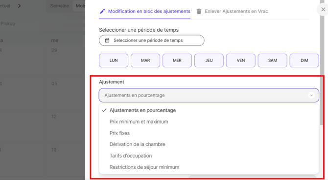 Comment puis-je ajuster les prix de plusieurs jours ?