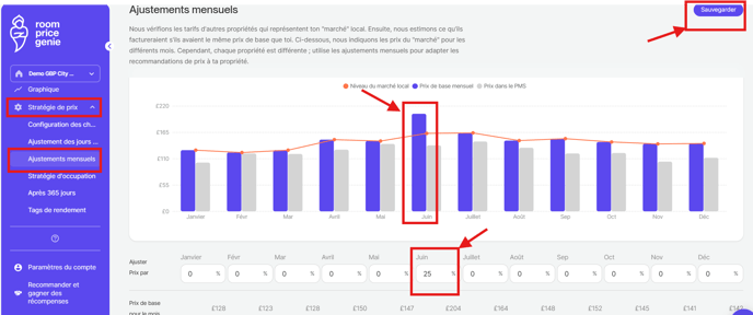 Les jours où vous avez beaucoup d'allocations, nous vous recommanderons toujours de facturer plus que les jours où vous n'avez aucune allocation – c'est normal car vous avez besoin de trouver moins de personnes pour acheter vos chambres les nuits les plus chargées. Mais dans l'ensemble pour le mois, les chambres allouées seront retirées du nombre que nous nous attendons à avoir déjà été réservé. Nous ignorerons effectivement ces chambres pour notre calcul de la demande mensuelle.