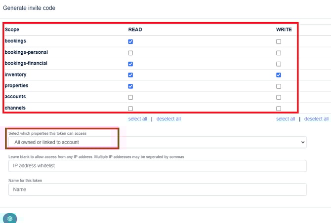 - Par contre, dans certaines autres versions de Beds24, vous verrez l'écran ci-dessous. Si vous voyez cet écran, veuillez également sélectionner "Autoriser les comptes appartenant ou liés au compte" dans le menu déroulant.