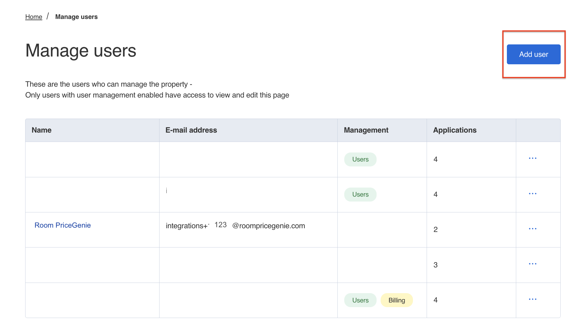 REMARQUE: Après avoir créé avec succès le nouvel utilisateur dans votre compte, veuillez confirmer auprès de votre contact chez RoomPriceGenie.