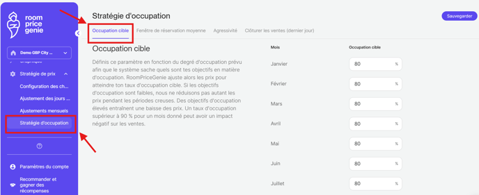 Découvrez l'onglet "Stratégie d'occupation " dans RoomPriceGenie.