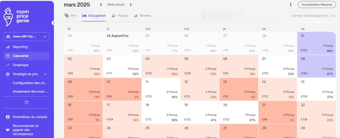La tarification de chaque jour est influencée à la fois par la disponibilité de la journée (optimisation de vos prix pour les chambres restantes) et par l' » ajustement du mois complet » qui prend en compte l'ensemble du mois.
