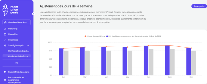 Les ajustements des jours de la semaine peuvent vous aider à identifier les jours de la semaine où vous devez être plus ou moins cher que les hôtels représentés par votre analyse de marché.