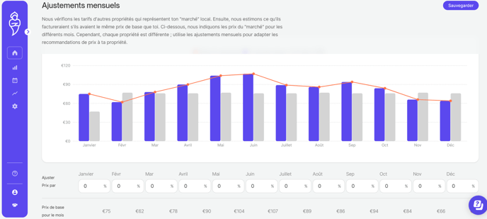 Ces chiffres indiquent le prix de base moyen de chaque mois plus l'augmentation ou la diminution du facteur de marché moyen. De cette façon, nous visualisons la saisonnalité et vous pouvez appliquer un ajustement mensuel manuel pour affiner votre stratégie.