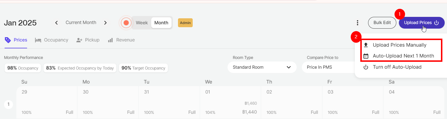 Still, in case you wish to immediately push the new prices, you can click at "Upload Prices" in the top right corner of your calendar (see below):