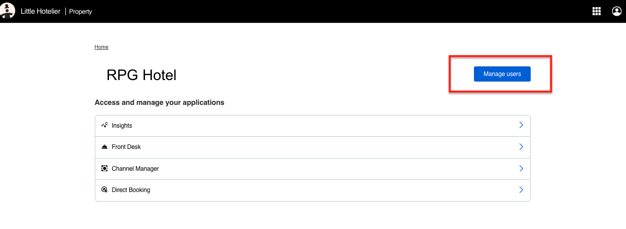 - You can only create new users with a LittleHotelier account if you have Admin rights. If you experience that some of the steps shown below cannot be executed, it is most likely that you are using an account without Admin rights.