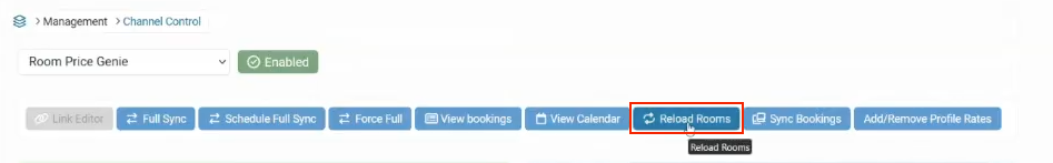 - To push the room inventory from Levart to RoomPriceGenie, click on “Reload Rooms”.