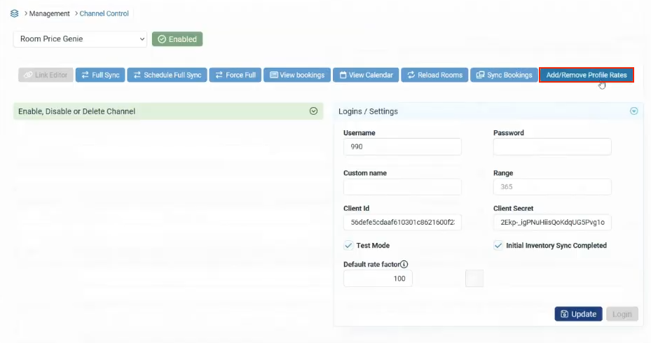 From the RoomPriceGenie channel page, click on “Add/Remove Profile Rates”.