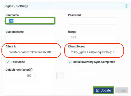 - Click Login / Update once the credentials are entered.