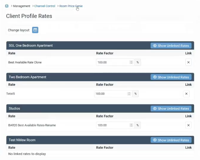 From this view, the property can select or filter which rooms and rates they want to send to RoomPriceGenie.