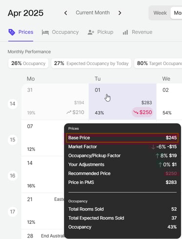 When you select any date in the Calendar view, the base price will be displayed in the Price Pop-up. The Base Price serves as the starting point for our calculations.