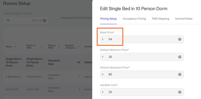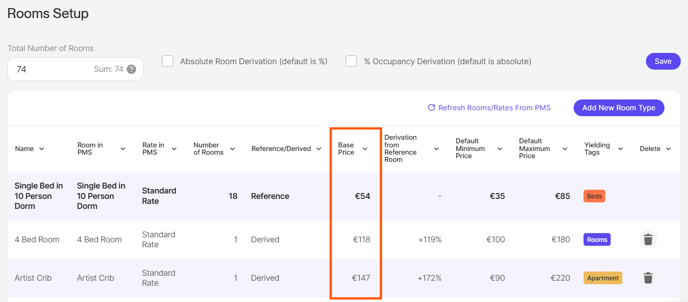 In the Room Setup, you can view and edit the Base Price for all your room types on one screen.