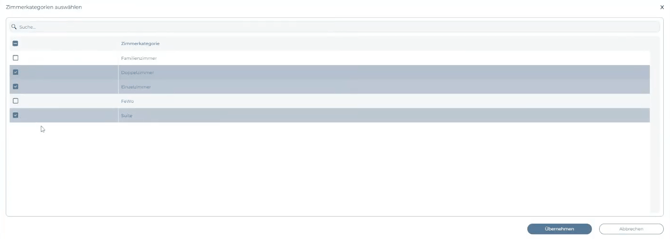 - Mark the room categories that should be sent to RoomPriceGenie (e.g. Doppelzimmer, Einzelzimmer).