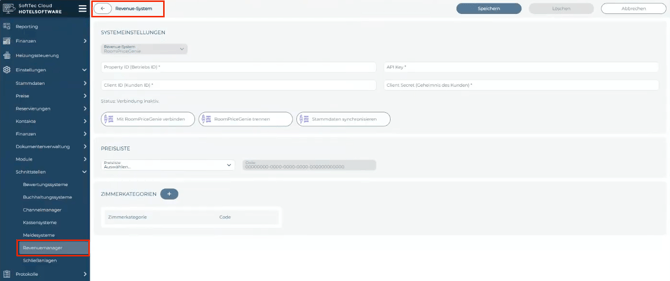 Schnittstellen → Revenuemanager → RoomPriceGenie