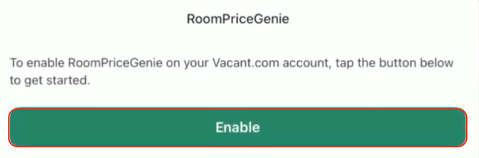 On the RoomPriceGenie page, click the Enable button to activate the integration option.