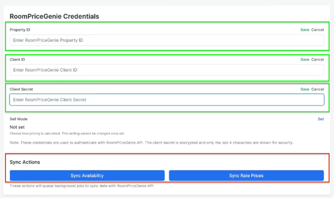 - Volver a la sección “RoomPriceGenie Credentials” mencionada en el paso 1.