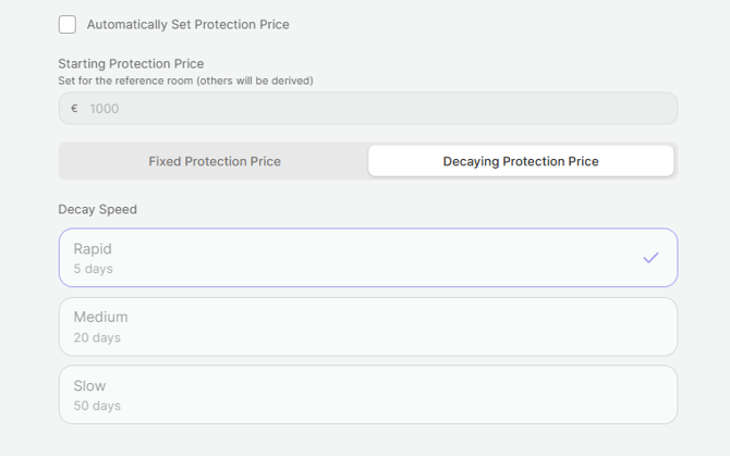 Opción 2: Precio de protección decreciente (Decay Speed)